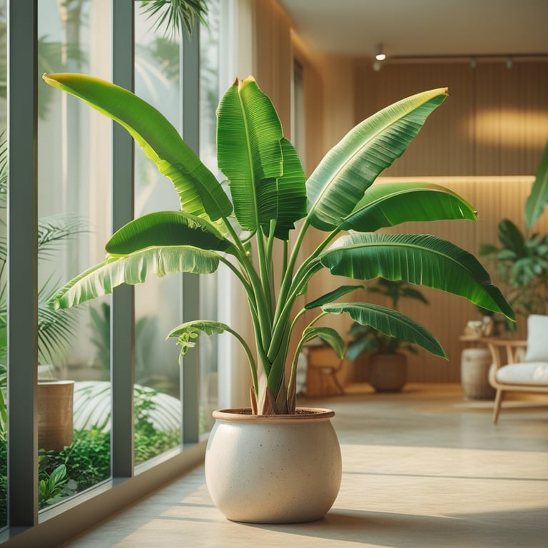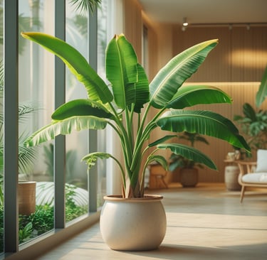 Quando cultivada nas condições adequadas, a bananeira se torna um verdadeiro destaque decorativo. Suas folhas largas e vibrantes trazem um ar tropical e acolhedor aos ambientes internos, transformando salas, varandas fechadas e áreas próximas a janelas em espaços muito mais vivos e sofisticados.